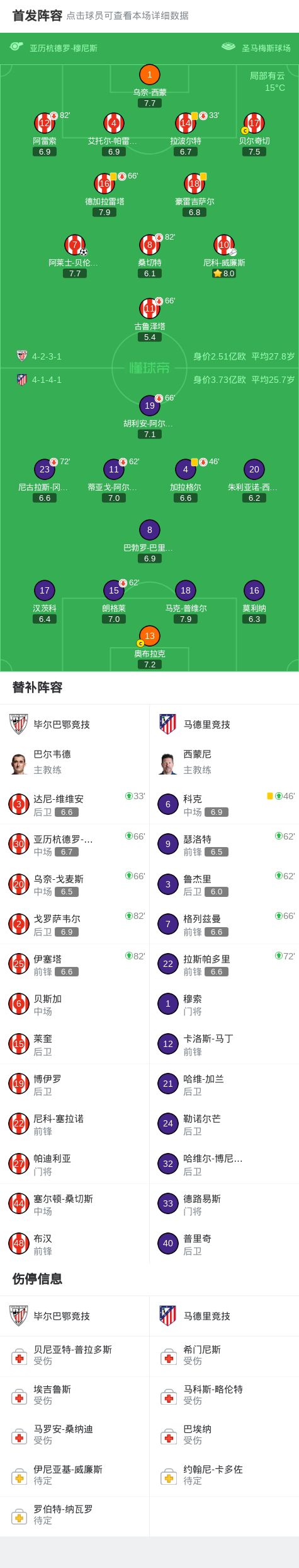 北京时间12月7日,西班牙足球甲级联赛第15轮展开较量,毕尔巴鄂竞技坐镇主场迎战马德里竞技。上半场桑切特屡造险,威廉斯险破门,下半场桑切特单刀打偏,贝伦格尔绝杀。毕尔巴鄂竞技以1-0战胜马竞。