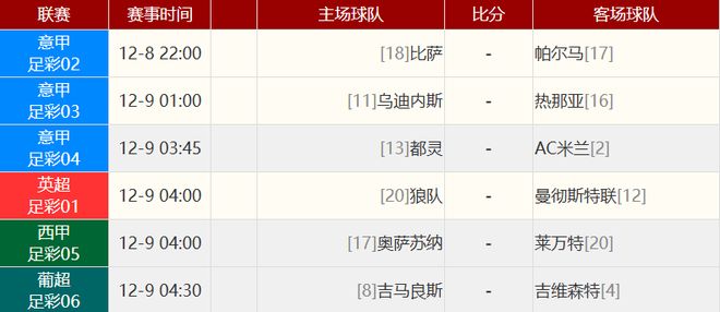其他赛事比分: